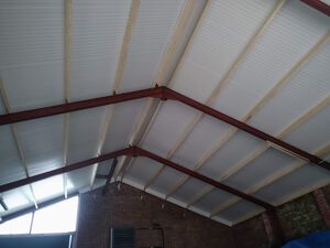 Daar na hebben wij nieuwe gordingen geplaatst en het dak teruggemonteert met een geisoleerde dakpaneel.