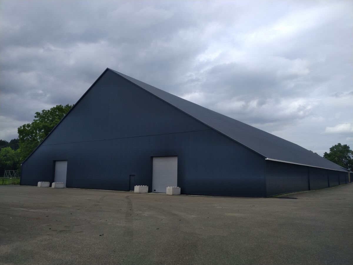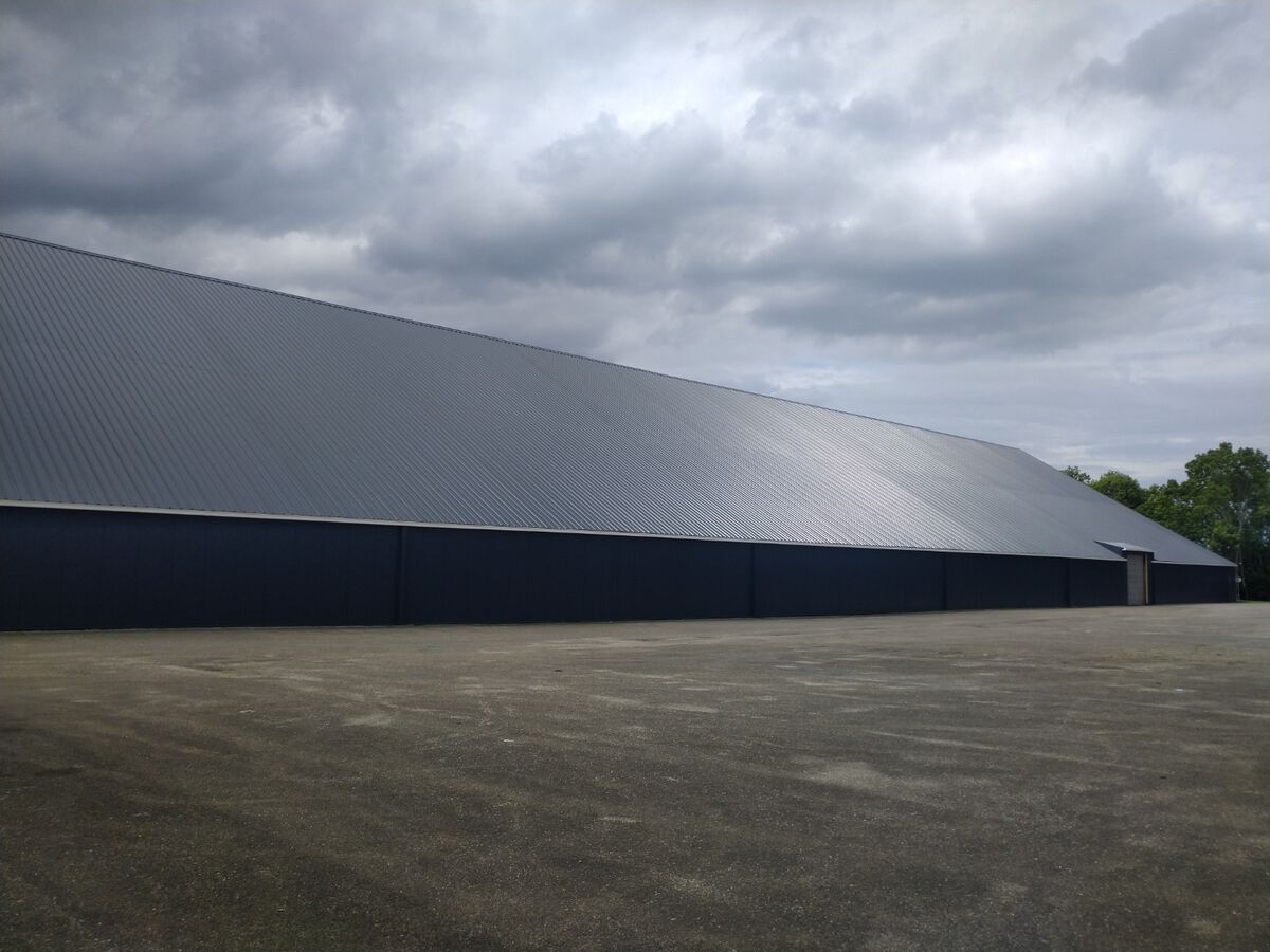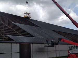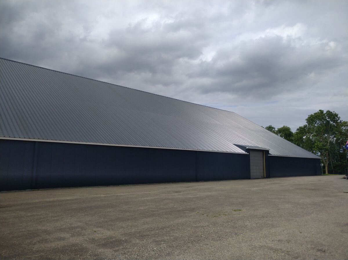Deze grote hal 120x50 mtr hebben wij ontdaan van de eerste generatie asbestvrije golfplaten circa 6800m2. Daarvoor in de plaats hebben wij een geïsoleerde dakplaat met een kerndikte van 8 cm en een HPS coating 7016 weer teruggelegd. De wanden zijn voorzien van sandwichpanelen met een kerndikte van 8 cm. Om een strakke achtergrond te creëren hebben wij omega's gebruikt die wij hebben uitgelijnd. Tot slot zijn de polyester dakgoten geïnstaleerd met de benodigde afvoeren. Deze afvoeren zijn als strakke afwerking voorzien van zetwerk in hetzelfde materiaal als de wanden. Deze schitterende hal is voor de komende jaren weer helemaal up to date.