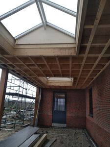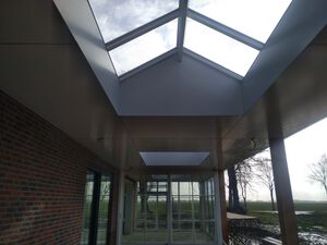 Voor een nieuwbouwwoning in Finsterwolde schakelde de hoofdaannemer Fledderman Bouw in Siddeburen ons in voor het plaatsen van een aluminium composiet plafond.