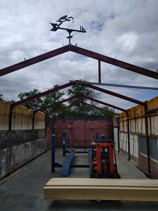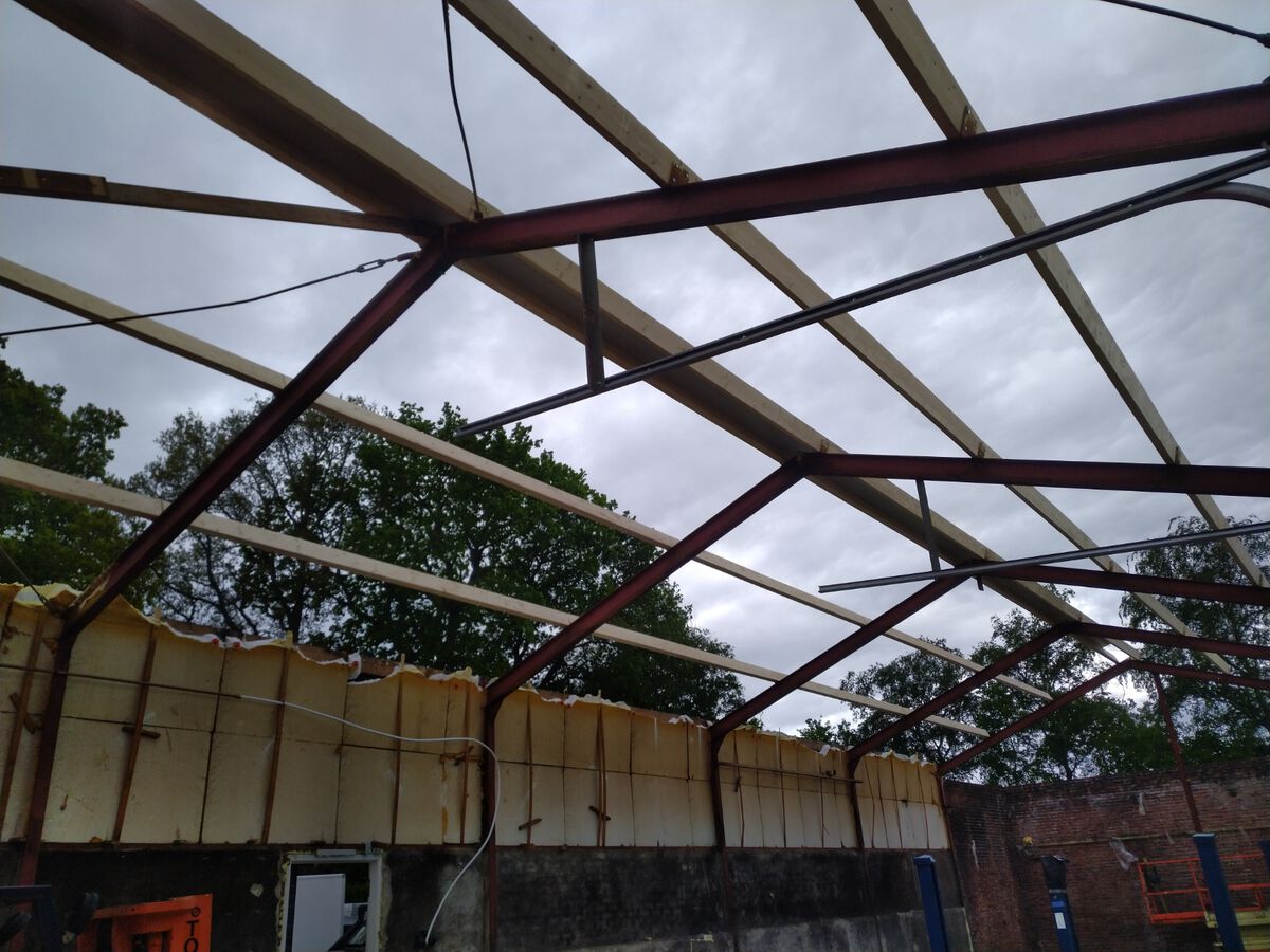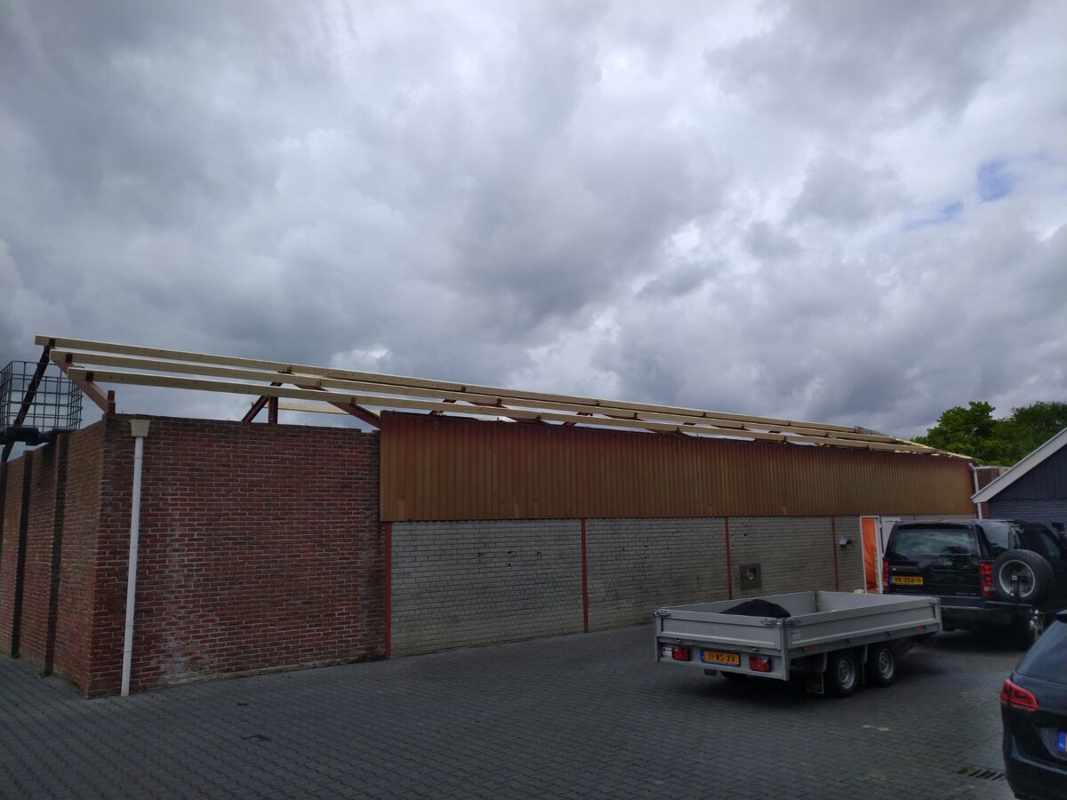 Hier is eerst het asbest verwijdert en door ons nieuwe gordingen geplaatst.