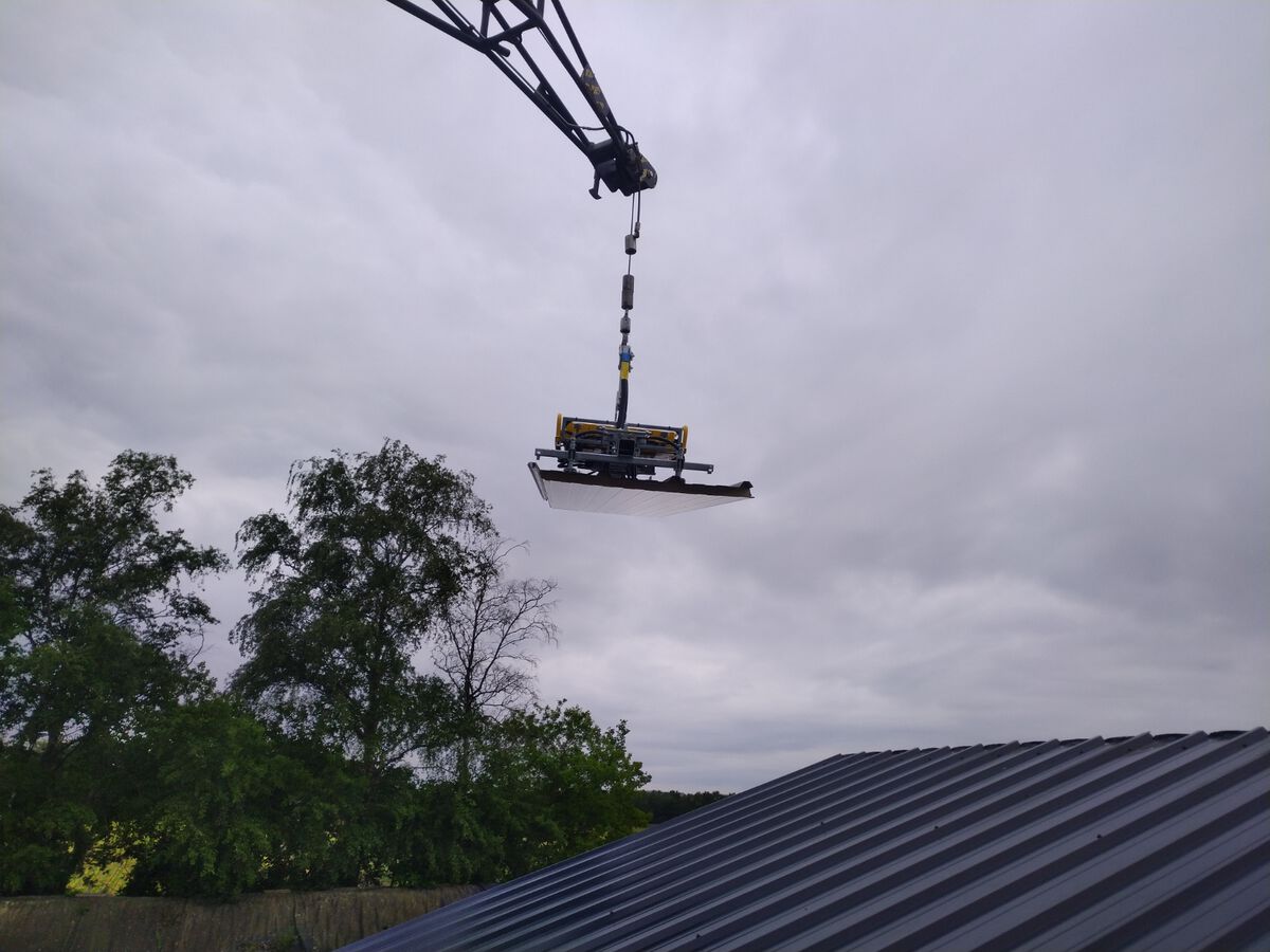 Het dak hebben wij met onze vacuumheffer teruggelgd hier is gebruikt gemaakt van een geisoleerde dakpaneel met een kerndikte van 60 mm en in de ral kleur 7016.