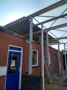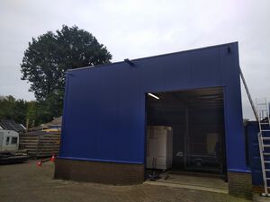 Deze uitbreiding mogen realiseren voor onze opdrachtgever Autobedrijf Kriegsman. Zij hebben gekozen voor een 60 mm sandwichpaneel in de kleur "sargasso" en natuurlijk de hps coating die bekent staat om zijn sterke kwaliteit